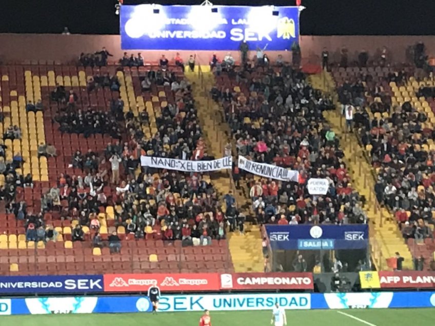 Por medio de pancartas y cánticos, los hinchas de Unión Española pidieron la salida de Fernando Díaz durante el duelo con O’Higgins que terminó con victoria celeste por 1-0 en el Estadio Santa Laura.