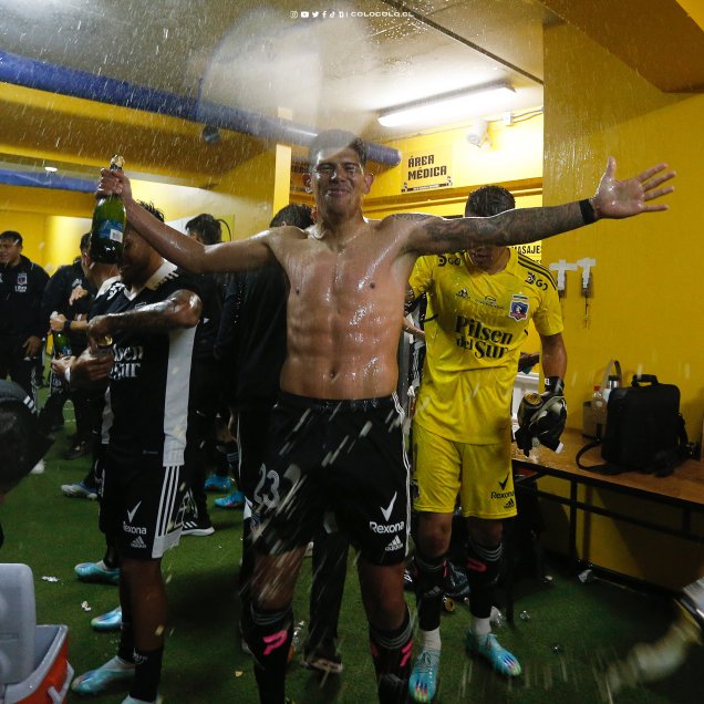El plantel y cuerpo técnico de Colo Colo tuvo un eufórico festejo en el camarín del Estadio “Francisco Sánchez Rumoroso” en Coquimbo, luego de proclamarse campeones del fútbol chileno este 2022.