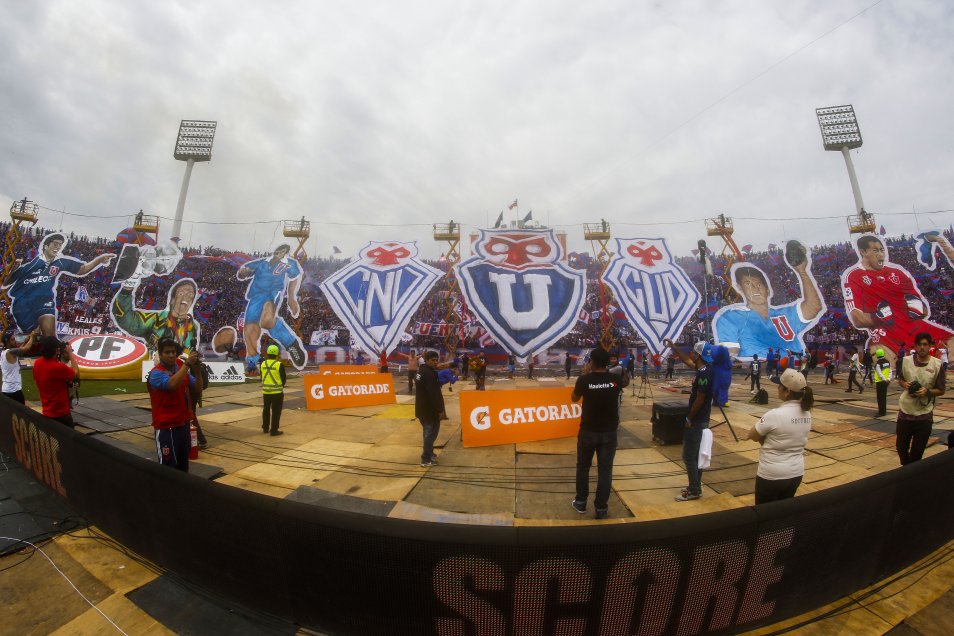 Minutos previos al clásico universitario, la barra de Universidad de Chile desplegó impresionantes lienzos gigantes en homenaje a seis ídolos azules: Marcelo Salas, Leonel Sánchez, Sergio Vargas, Carlos Campos, Johnny Herrera y Diego Rivarola.