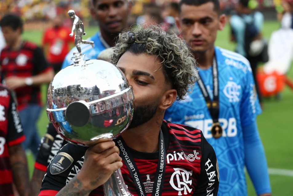 El chileno Arturo Vidal fue protagonista en las celebraciones de Flamengo en la cancha tras ganar la Copa Libertadores ante Athletico Paranaense. Erick Pulgar también recibió su medalla.