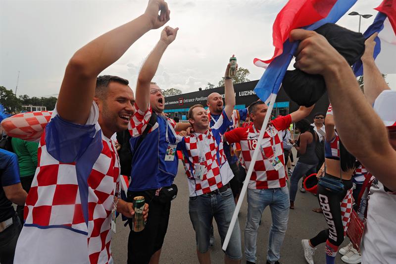Los hinchas de Croacia y Francia llenaron con su alegría las inmediaciones del estadio Luzhniki de Moscú, en la previa de la gran final del Mundial Rusia 2018.