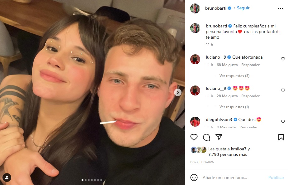El jugador de Palestino Bruno Barticcitto dejó un cariñoso saludo cumpleañero a su “persona favorita”, Catalina Sierra, quien es hija de un ex compañero de su papá Marcelo, José Luis Sierra.