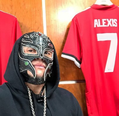 El popular luchador mexicano/estadounidense Rey Misterio visitó las instalaciones del estadio Old Trafford en Inglaterra y posó con las camiseta de Alexis Sánchez y otros jugadores de Manchester United.