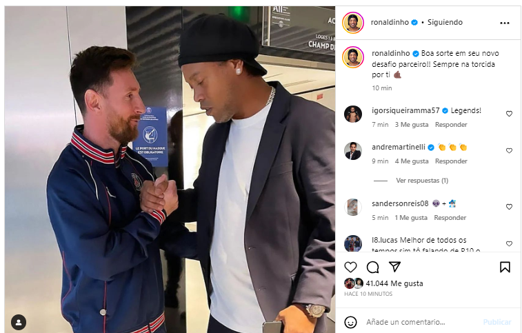 Este fue el mensaje que Ronaldinho dedicó a Lionel Messi ante su nuevo desafío en Inter Miami: “Buena suerte”, le escribió.