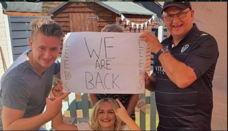 Una familia hincha de Leeds United viralizó una antigua foto que se tomó hace 16 años cuando el club descendió y lo hizo junto a una nueva imagen donde se puede leer “We are back”.