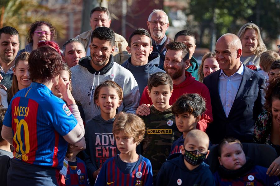 Los futbolistas Lionel Messi y Luis Suárez lideraron una comitiva de jugadores de Barcelona que compartieron de con niños de distintas fundaciones y hospitales de la ciudad condal durante este domingo.