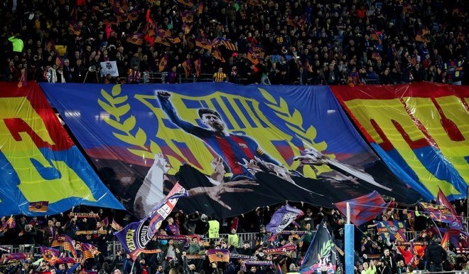 Los hinchas de FC Barcelona le rindieron “pleitesía” al “Rey” Lionel Messi con una bandera gigante que desplegaron en el Camp Nou.
