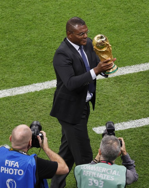 La Copa del Mundo llegó a la inauguración del Mundial de Qatar 2022, siendo presentada por el francés Marcel Desailly, campeón en Francia 1998.