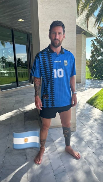 Lionel Messi desató la alegría de sus compatriotas en redes sociales al posar con un camiseta retro de Argentina, el modelo utilizado en el Mundial de Estados Unidos 1994, el último que disputó Diego Maradona con la albiceleste.