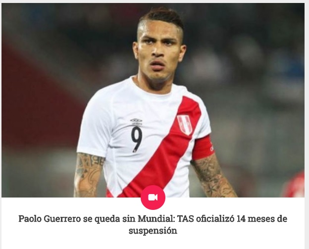 Conmoción ha generado en los medios e hinchas peruanos, la sanción de 14 meses que recibió el delantero y máxima figura de la selección “bicolor”, Paolo Guerrero por doping positivo en Noviembre pasado y que le impedirá jugar el Mundial de Rusia 2018.