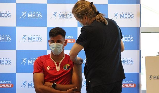 El plantel de Audax Italiano recibió este martes su primera dosis de la vacuna Sinovac contra el Covid-19, que donó la Conmebol y distribuyó la ANFP.