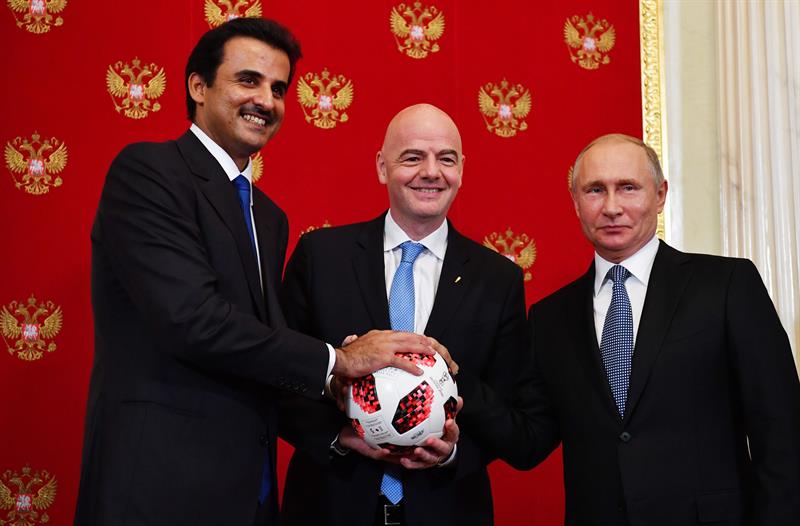 El presidente, Vladimir Putin, se mostró orgulloso del Mundial de Rusia 2018 y ofreció al emir de Qatar, Tamim bin Hamad al-Thani, compartir la experiencia acumulada en este campeonato, en una ceremonia de entrega simbólica del torneo al país que será sede en 2022.