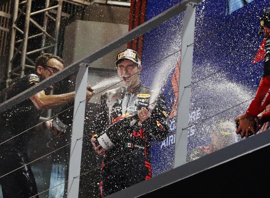 El mexicano Sergio “Checo” Pérez festejó con todo este domingo en Marina Bay tras ganar en Singapur su cuarto Gran Premio en la Fórmula 1.