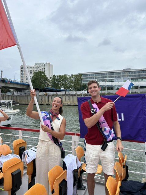 El tenista Nicolás Jarry y la remera Antonia Abraham, abanderados del Team Chile, animaron el paso de la delegación nacional en el desfile de la ceremonia inaugural de los Juegos Olímpicos de París 2024, los cuales tuvieron lugar en el Río Senna de la capital de Francia.
