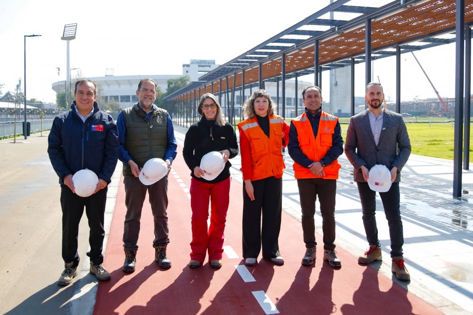 El ministro del Deporte, Jaime Pizarro, la subsecretaria Antonia Illanes, el director nacional del Instituto Nacional de Deportes, Israel Castro, el senador Alfonso de Urresti; los diputados Andrés Giordano, Jaime Mulet y la diputada Erika Olivera inspeccionaron el Parque Estadio Nacional con miras a los Juegos Panamericanos y Parapanamericanos de Santiago 2023.
