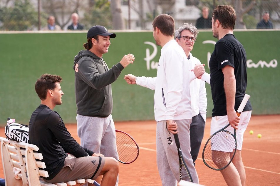 El feliz reencuentro de Nicolás Massú con Stan Wawrinka en práctica en Marbella, en la que el “Vampiro” acompañó a sus pupilo Dominic Thiem. El suizo y el austriaco vuelven al circuito en el Challenger de esa ciudad.