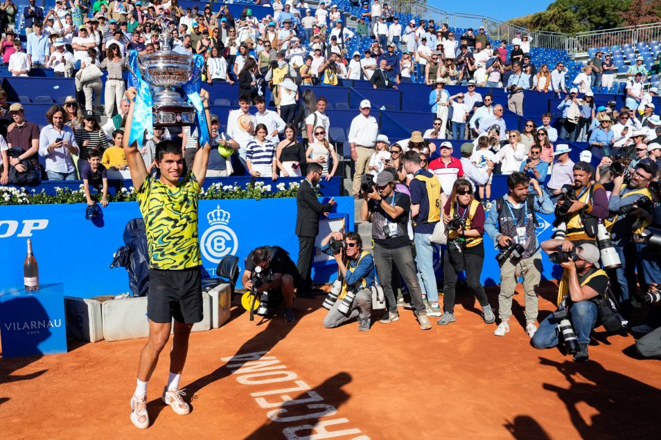 La euforia de “Carlitos” Alcaraz tras gritar campeón en el ATP de Barcelona, luego de vencer en una exigente final al griego Stefanos Tsitsipas.